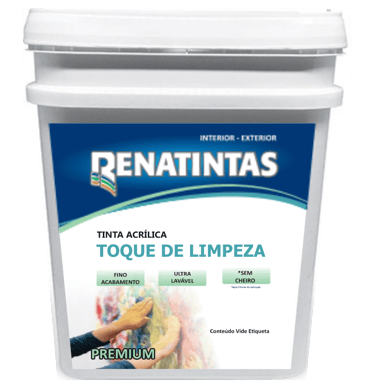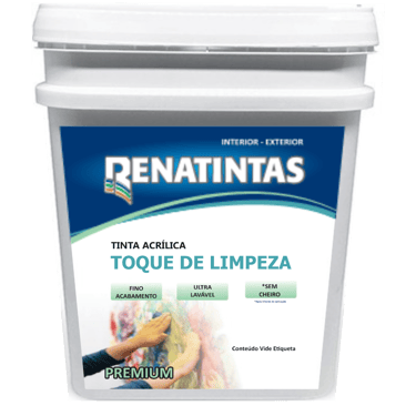 TOQUE DE LIMPEZA é uma Tinta acrílica PREMIUM disponível nos acabamentos Semi-Brilho e Acetinado, produto com excelente Cobertura, baixo Odor, ótimo Alastramento e fino Acabamento que facilita a Limpeza de Marcas de Sapato, Sujeira, Lápis, Caneta, Giz e outros, disponível na Cor Branca e em BASES para Sistema Tintométrico, pode ser aplicado em paredes Externas & Internas.