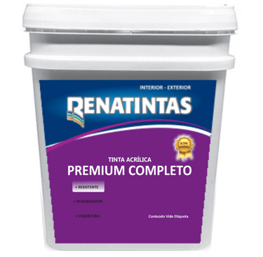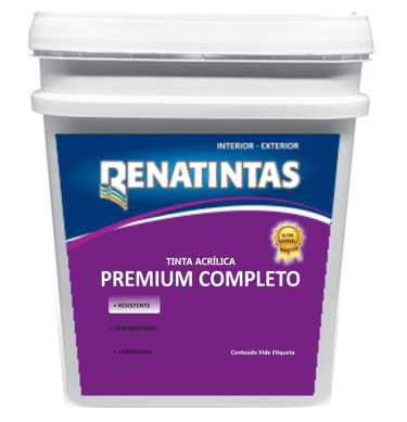 ACRÍLICO PREMIUM COMPLETO é uma Tinta acrílica PREMIUM disponível no acabamento Fosco, produto com excelente Cobertura, baixo Odor, ótimo Alastramento e fino Acabamento, disponível na Cor Branca e em BASES para Sistema Tintométrico, pode ser aplicado em paredes Externas & Internas.